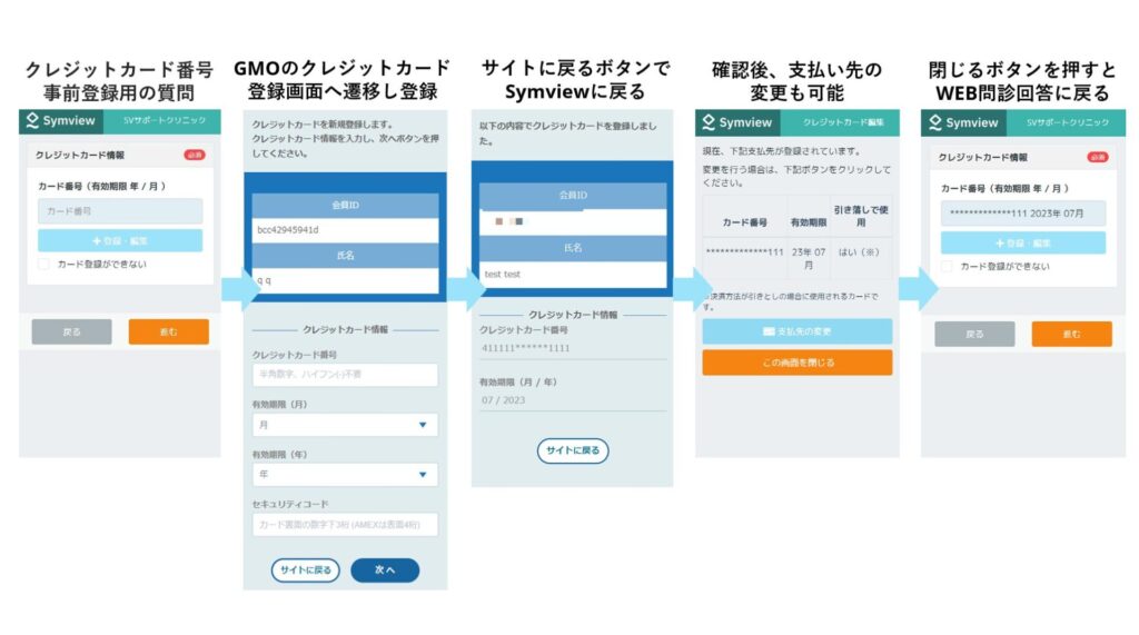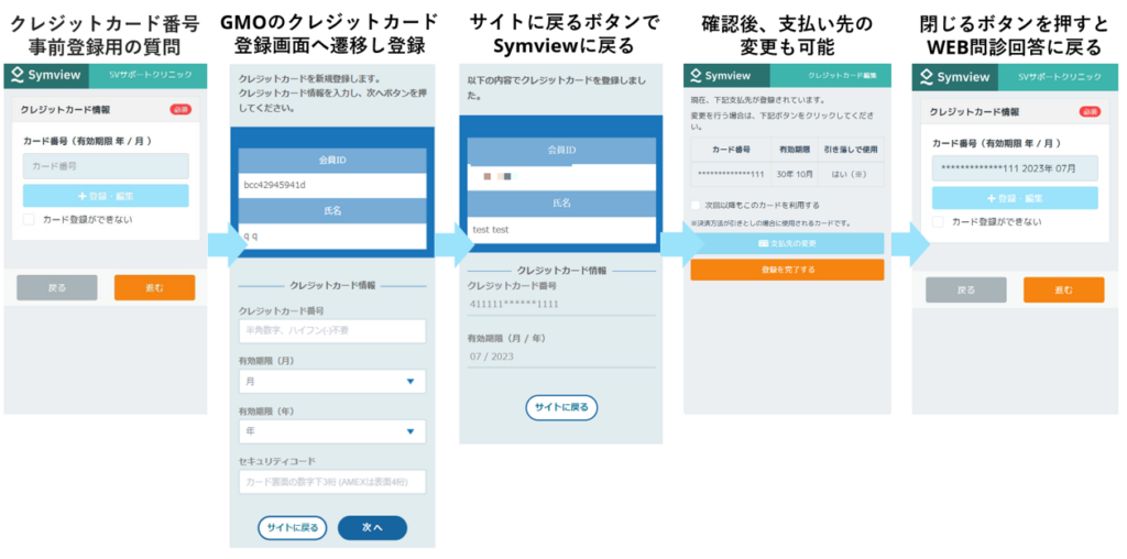 - カード情報の入力(省略可能): 前回の問診時に「次回以降もこのカードを利用する」にチェックを入れていれば、カード番号の入力を省くことができます。