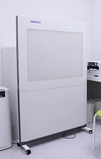 陰圧室とは…室内の空気や空気感染する可能性のある細菌が外部に流出しないように、気圧を低くしてあるお部屋です。